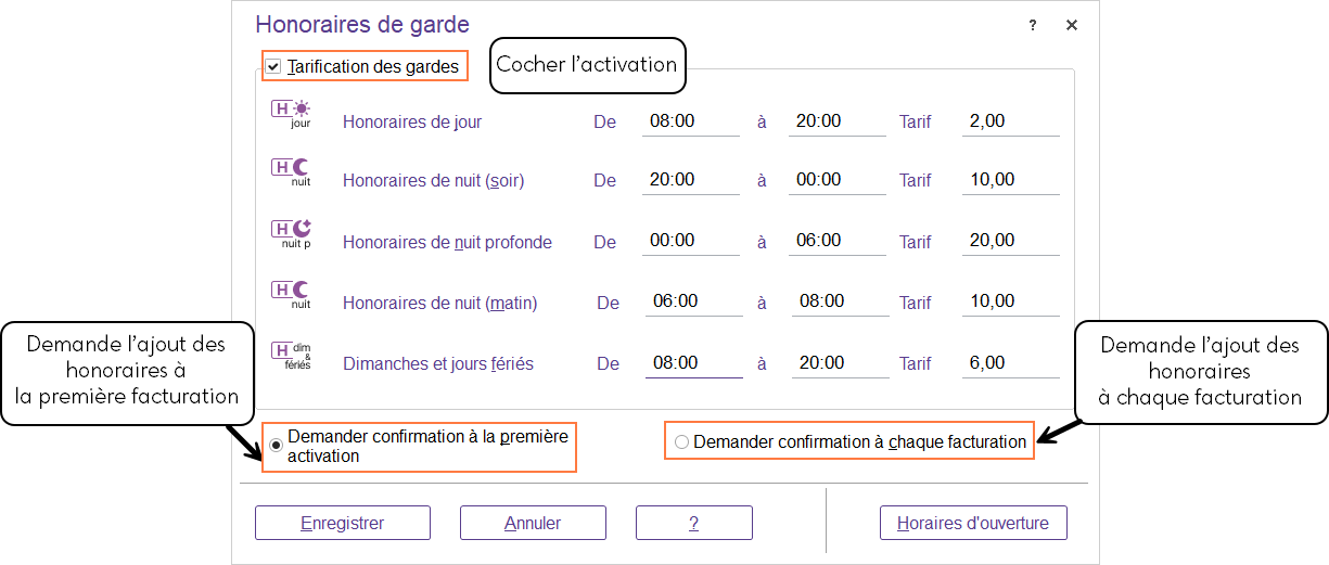 L’application des honoraires de garde se fait dans la facturation automatiquement