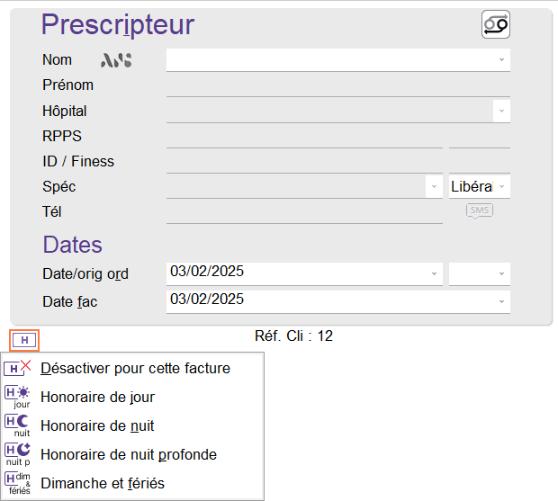 Il est possible de les ajouter manuellement via le bouton H situé en dessous de la partie prescripteur